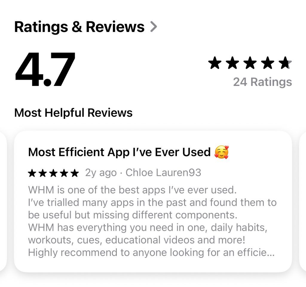 If you want structure, strength, and consistency (without burnout) the WHM app is for you!
